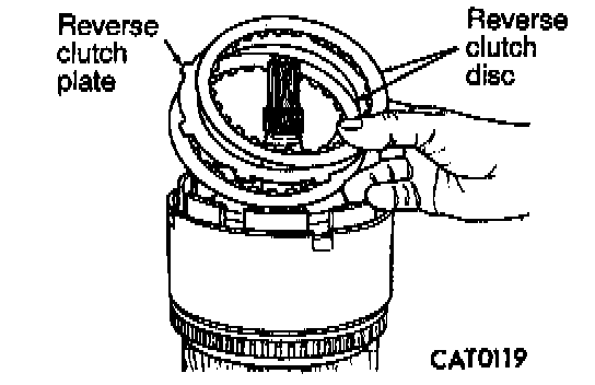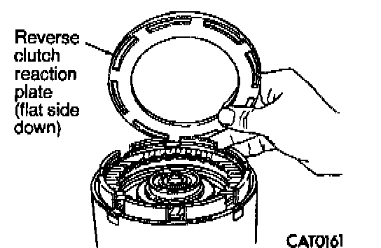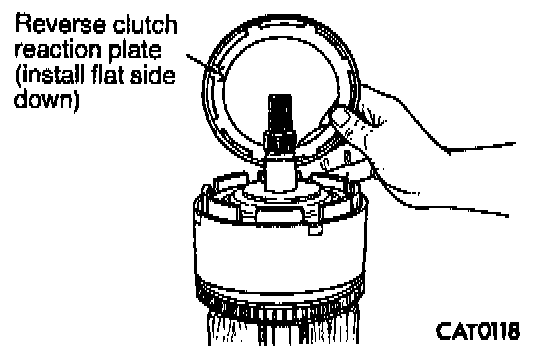 25. Install reverse clutch reaction plate with flat side down.