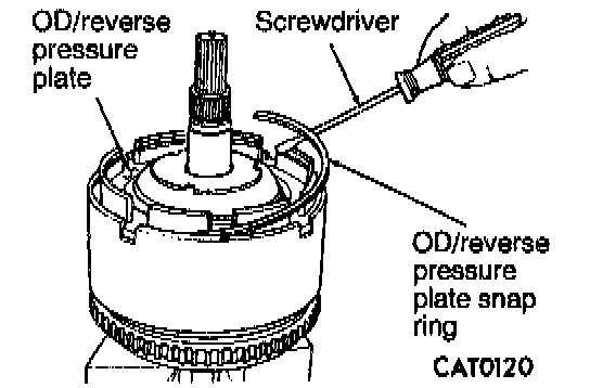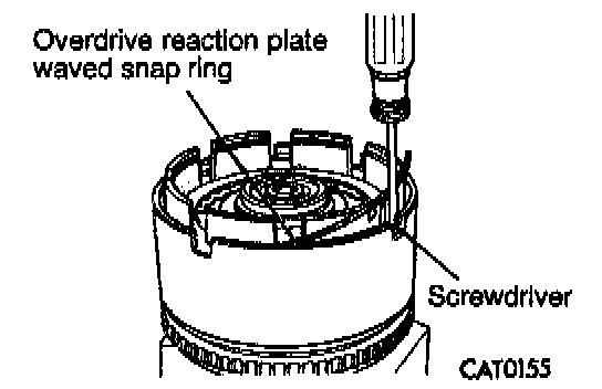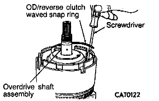 8. Remove overdrive/reverse clutch waved snap ring with a screwdriver.