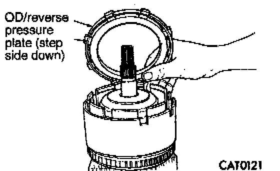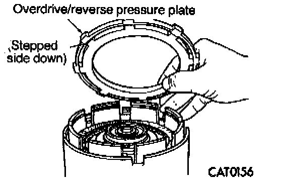 21. Install overdrive/reverse pressure plate with stepped side down.