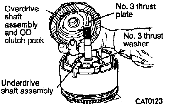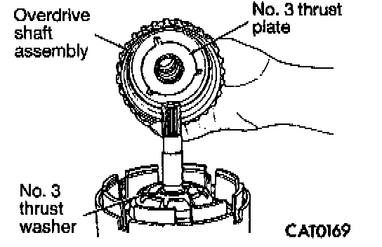 11. Remove No. 3 and No. 4 thrust plates from overdrive shaft assembly.