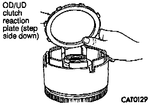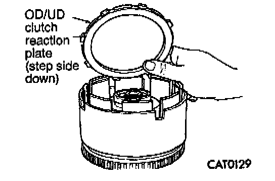 15. Install overdrive/underdrive clutch reaction plate with stepped side facing down.