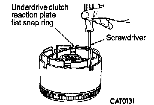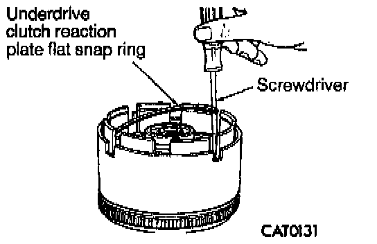 13. Install underdrive clutch reaction plate flat snap ring with a screwdriver.