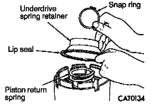 20. Remove underdrive spring retainer and spring.