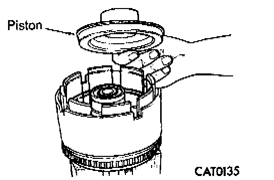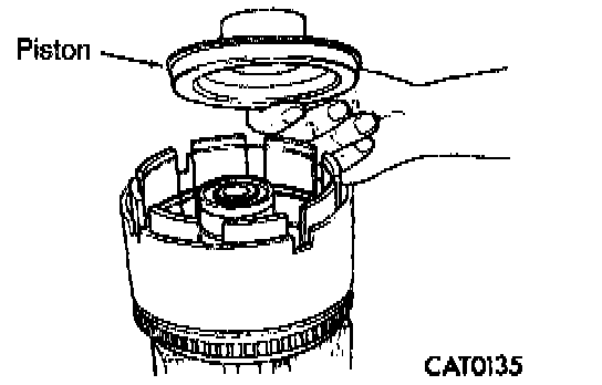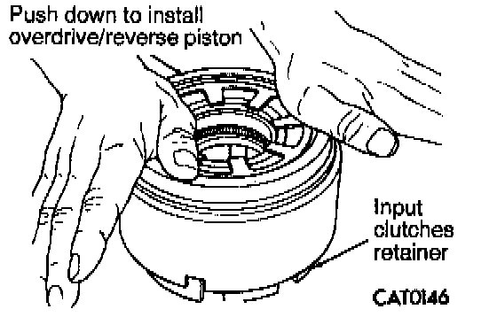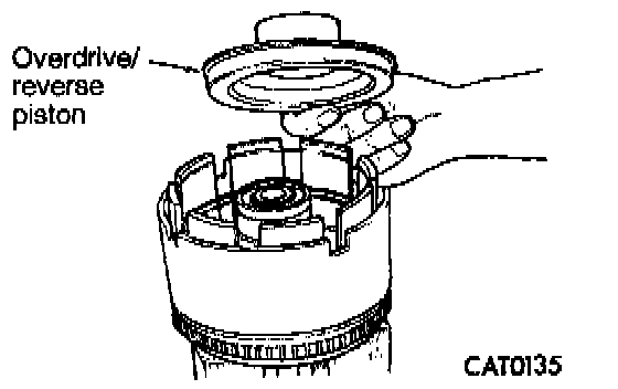 5. Install overdrive/reverse piston by pushing down. Be sure to lubricate reverse piston O-ring and lip seal prior to installation.