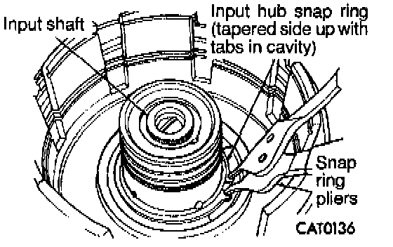 7. Install input hub tapered snap ring with snap ring pliers