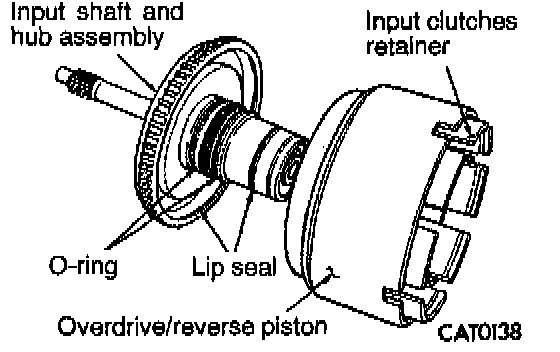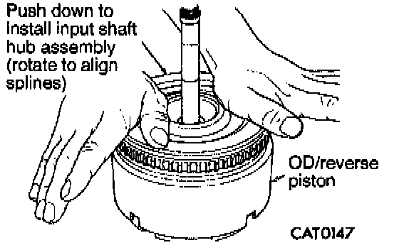 6. To install input shaft hub assembly to overdrive/reverse piston, rotate input shaft hub to align splines with overdrive/reverse piston and push down by hand.