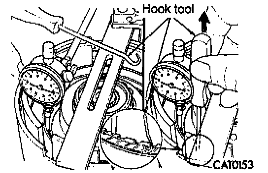 28. Check reverse clutch pack clearance by clutch reaction plate using a hook tool.