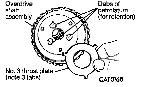 32. Stick No. 3 thrust plate onto overdrive shaft assembly with dabs of petrolatum.