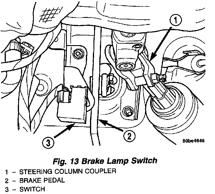 DESCRIPTIONThe brake lamp switch is located under the instrument panel at the brake pedal arm. It controls operation of the vehicle's brake lamps. Also, if the vehicle is equipped with speed control, the brake lamp switch will deactivate speed control when the brake pedal is depressed.