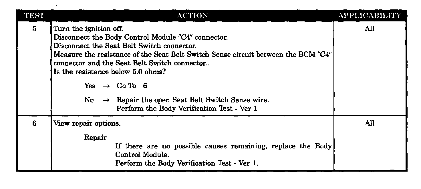 - Body control module seat belt sense open