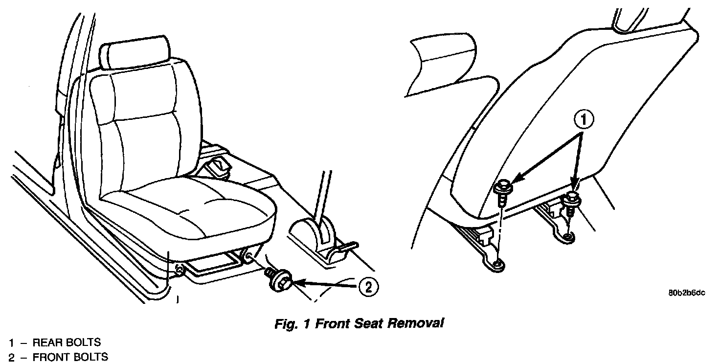 2. Remove bolts holding rear of seat track to floor (Fig. 1).