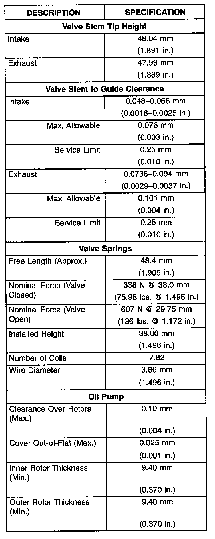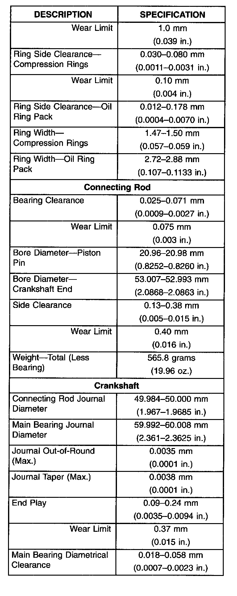 Engine Specifications