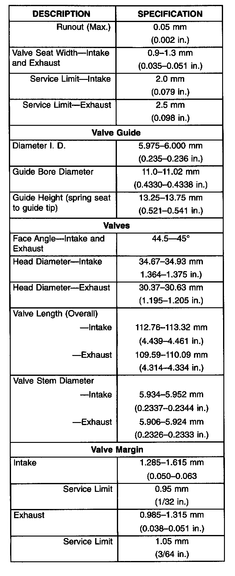Torque Specifications