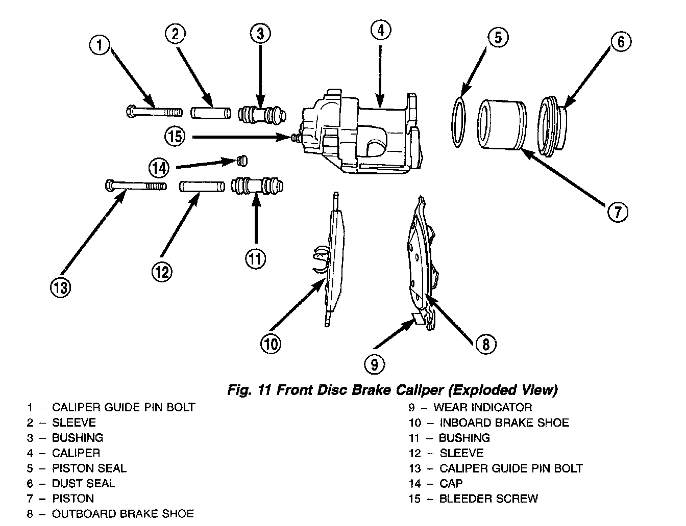 DESCRIPTIONThe front disc brakes consist of the following components: