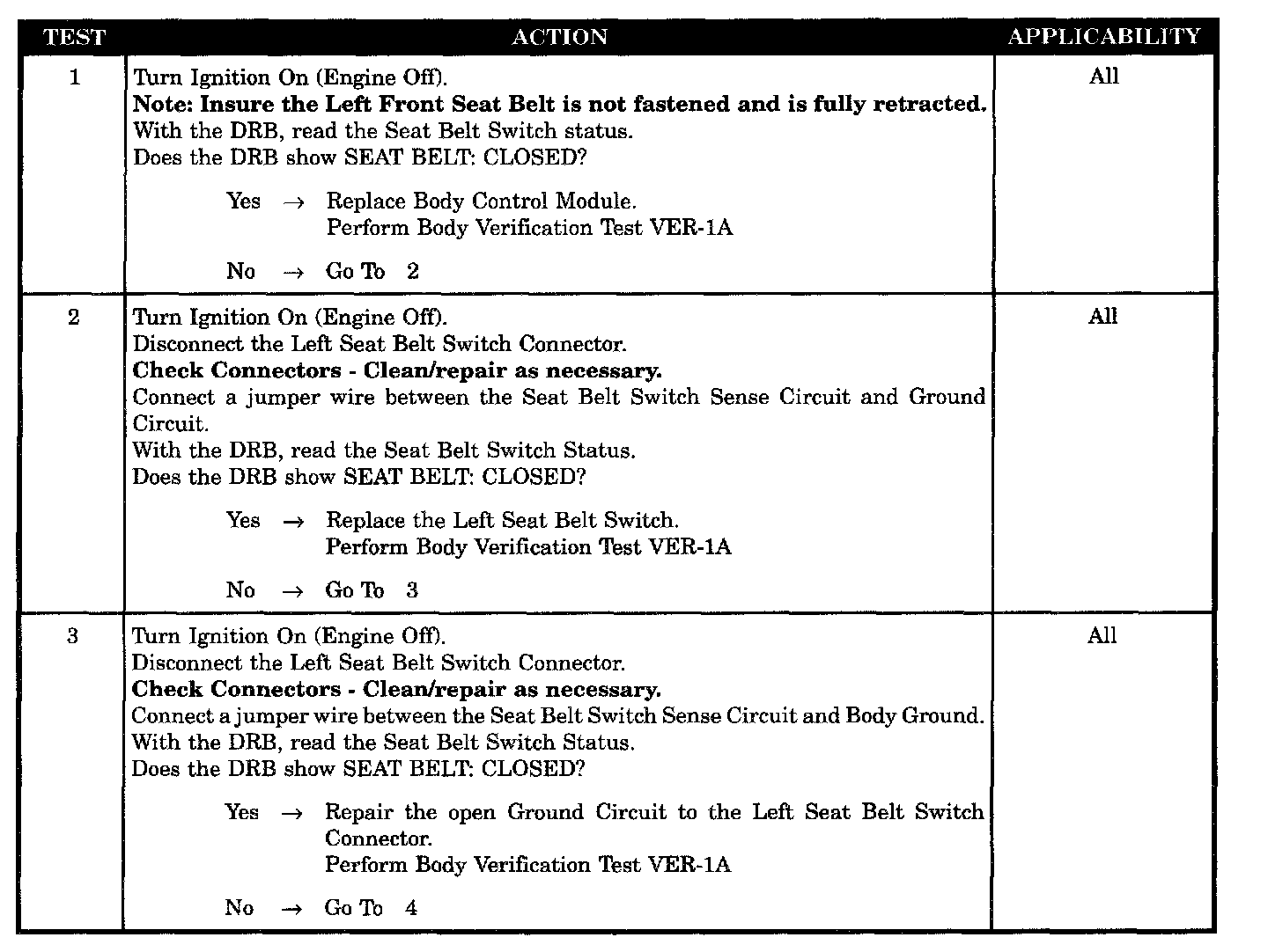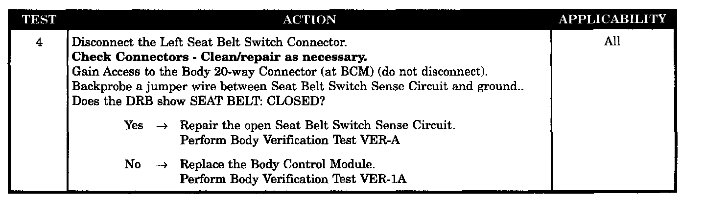CHIME INOPERATIVE WITH SEAT BELT UNFASTENED