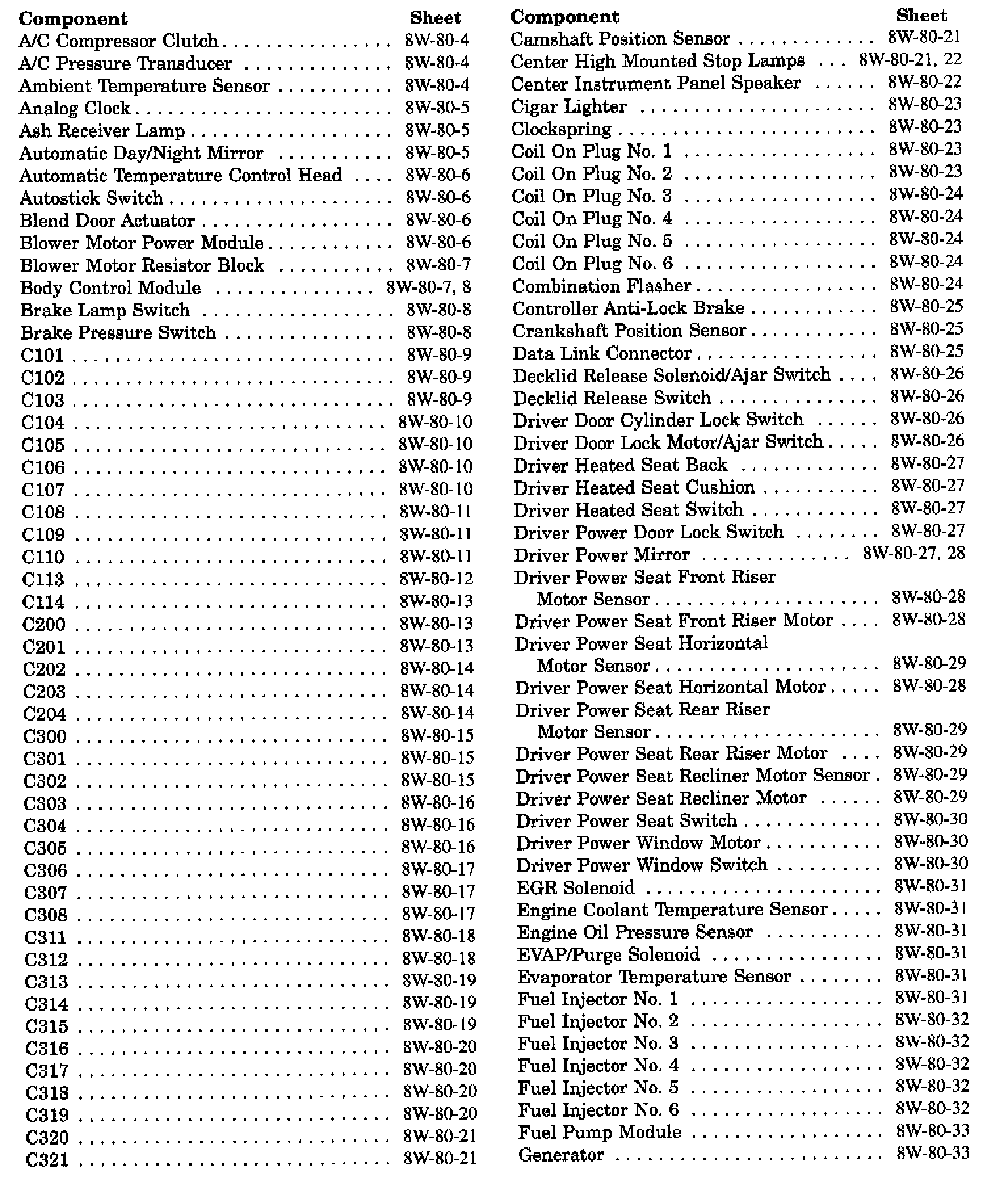 Connector Pin-Outs Component Index (Part 1 Of 3):