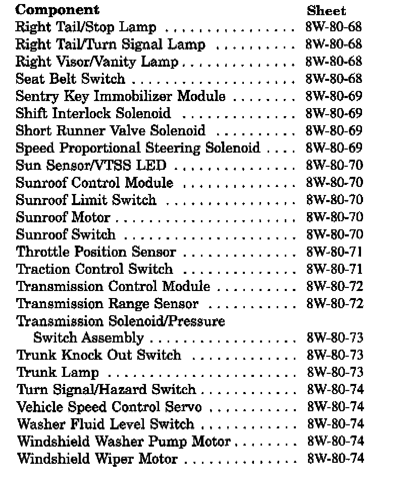 Connector Pinouts Component Index (Part 3 Of 3):
