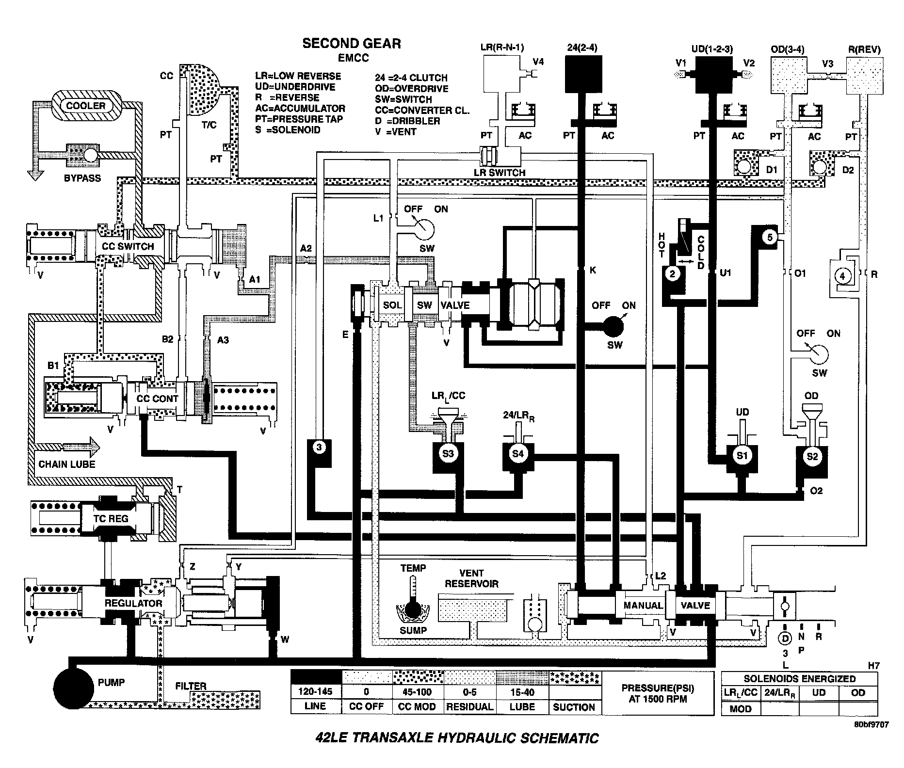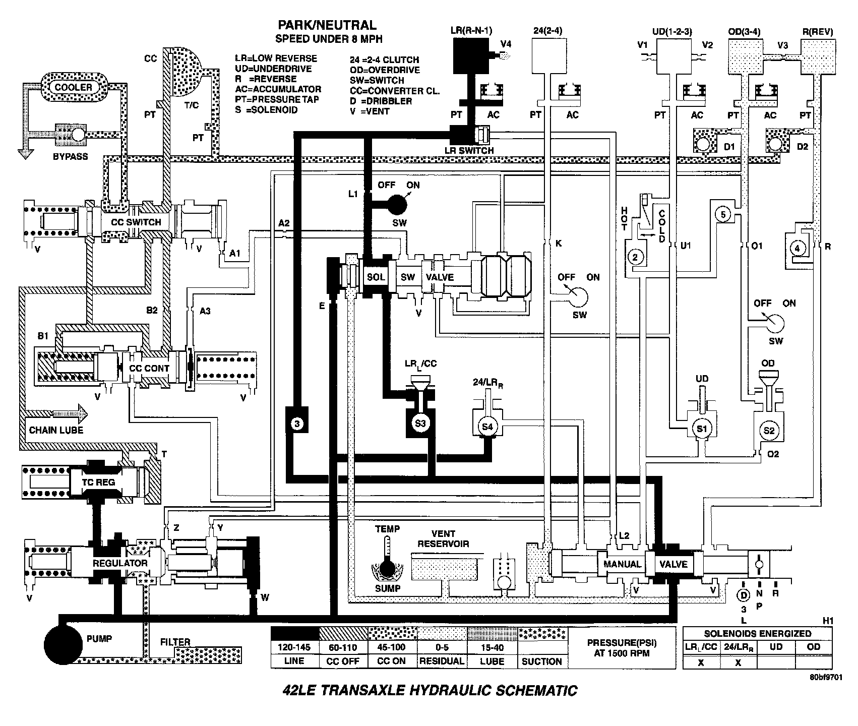 42LE TRANSAXLE HYDRAULIC SCHEMATICS Park/Neutral (Speed Under 8 MPH):