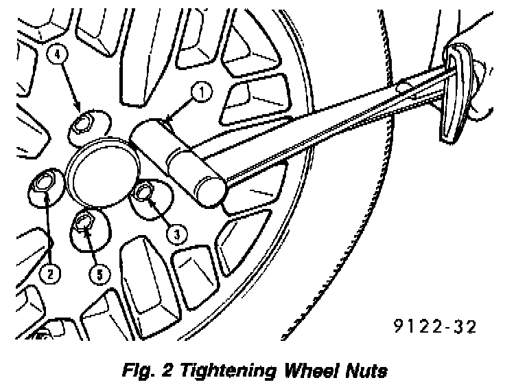 1. To install the wheel, first position it properly on the hub mounting surface using the hub pilot as a guide. Loosely install all 5 wheel mounting nuts. All wheel nuts should then be tightened just snug. Next, progressively tighten them in the proper sequence. Finally, tighten wheel mounting nuts to 135 Nm (100 ft. lbs.).