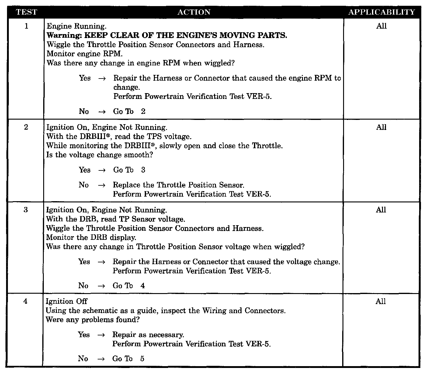 CHECKING THROTTLE POSITION SENSOR OPERATION WITH NO DTC'S