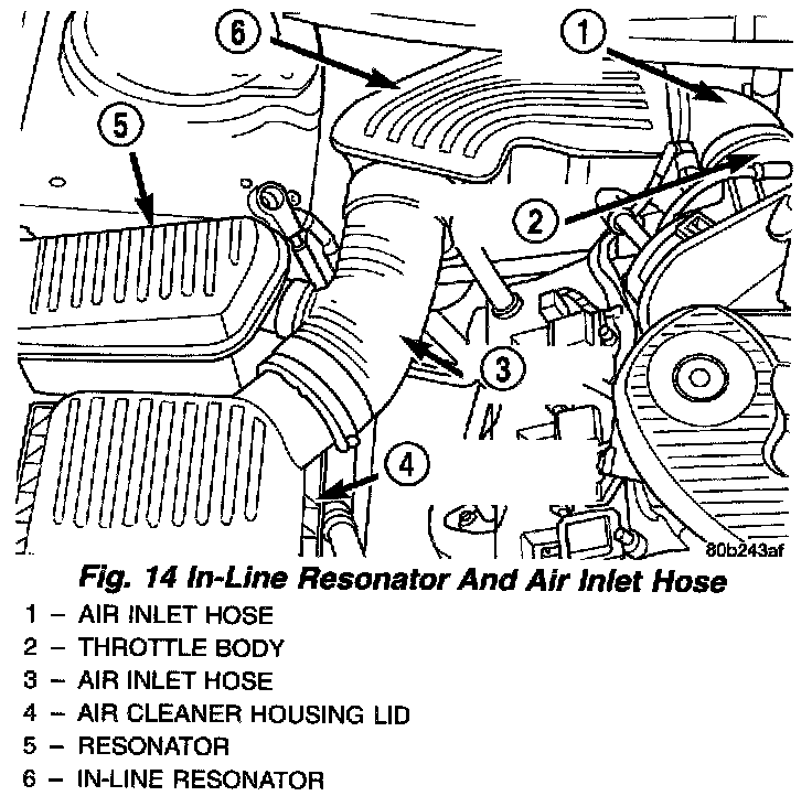 8. Remove the in-line resonator and inlet hose from the throttle body and air let hose coming from the lid of the air cleaner housing.