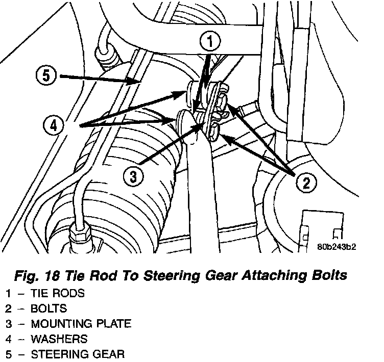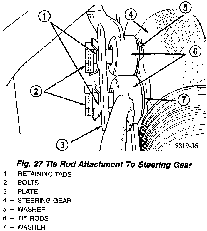 11. Bend back the retaining tabs on the mounting plate for the tie rod to steering gear mounting bolts.