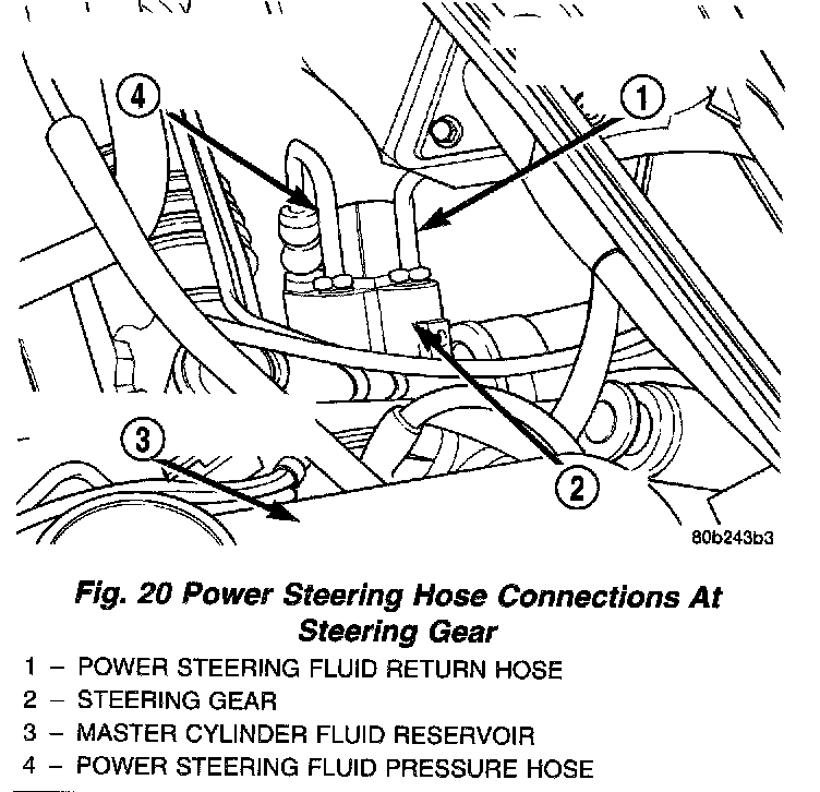 20. Move the steering gear to clear the pressure and return lines.