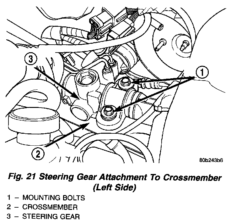 CAUTION: Tightening the steering gear to crossmember mounting bolts to the proper torque is very important.