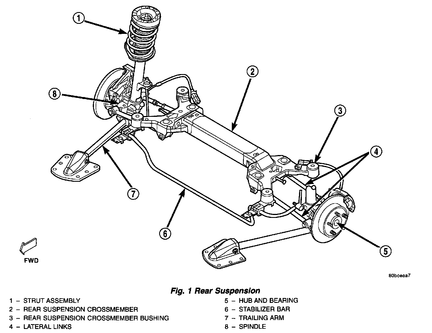 The rear wheel bearing and rear wheel hub of this vehicle are a one piece sealed unit or hub and bearing unit type assembly. The hub and bearing is mounted to the center of the spindle using a retaining nut. It has five wheel mounting studs on the hub flange.