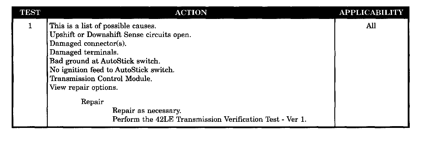 NO AUTOSTICK OPERATION WITH NO DTC'S