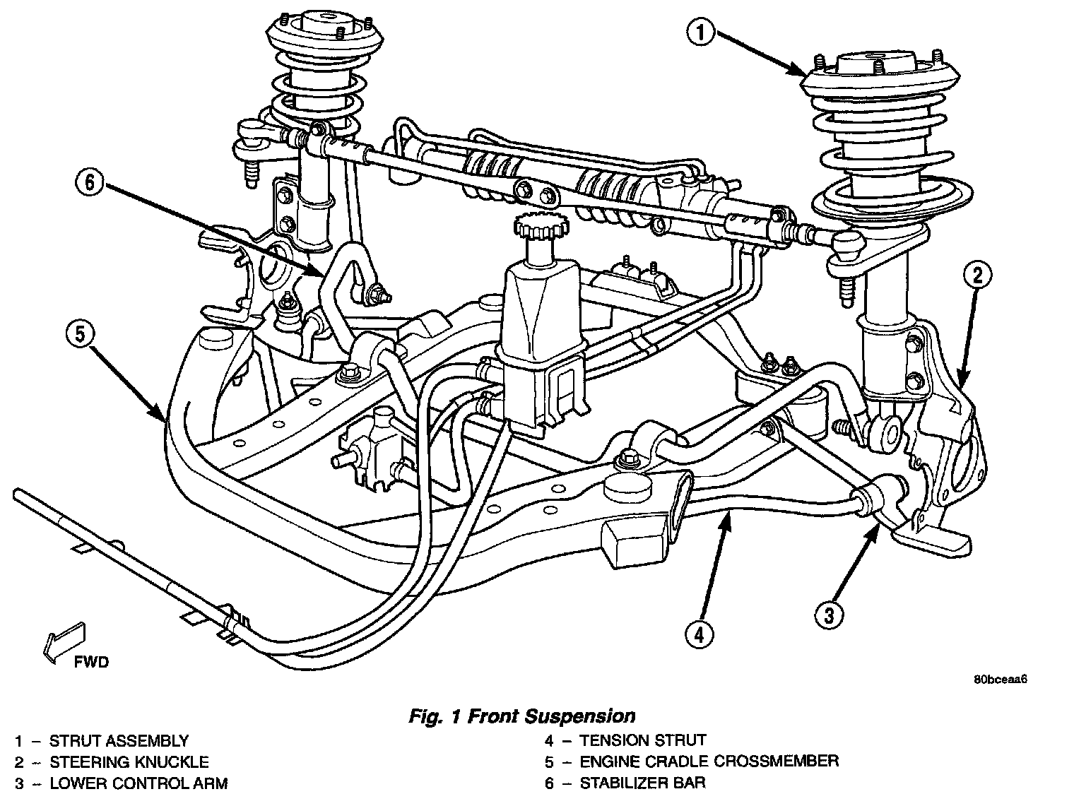 DESCRIPTIONThe stabilizer bar interconnects both front struts of the vehicle and is attached to the front cradle/crossmember.