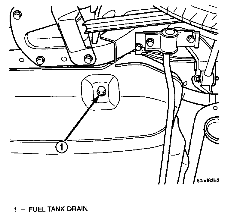 Raise and support vehicle on hoist. Obtain the proper container for GASOLINE. Remove drain plug and drain