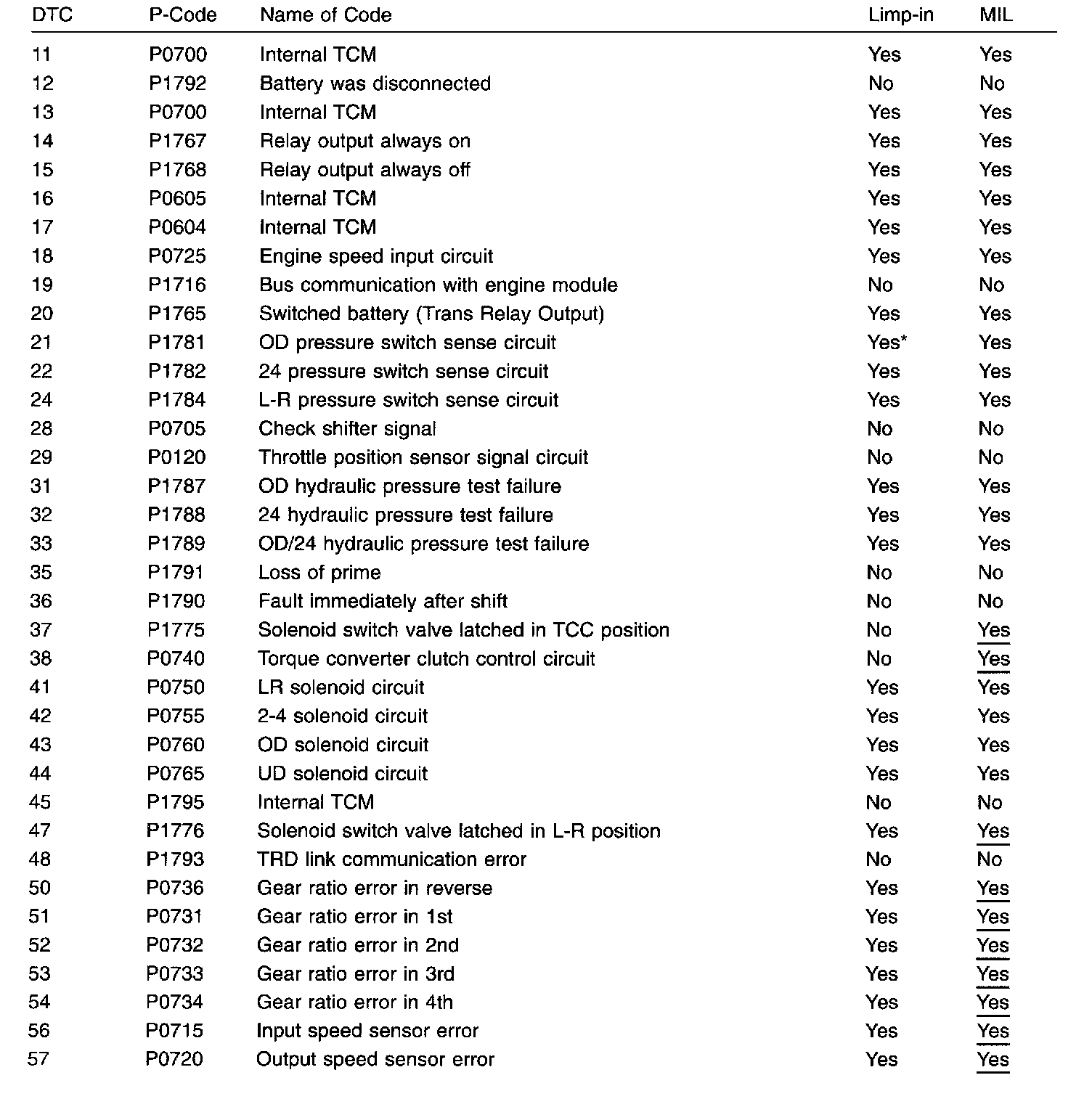 List of Diagnostic Trouble Codes