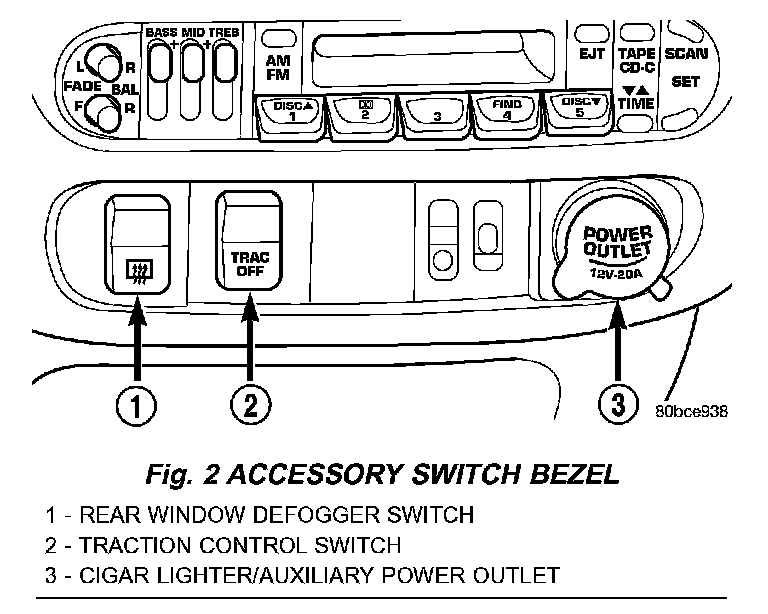 2. Install the four screws retaining the accessory switch bezel (Fig. 2).
