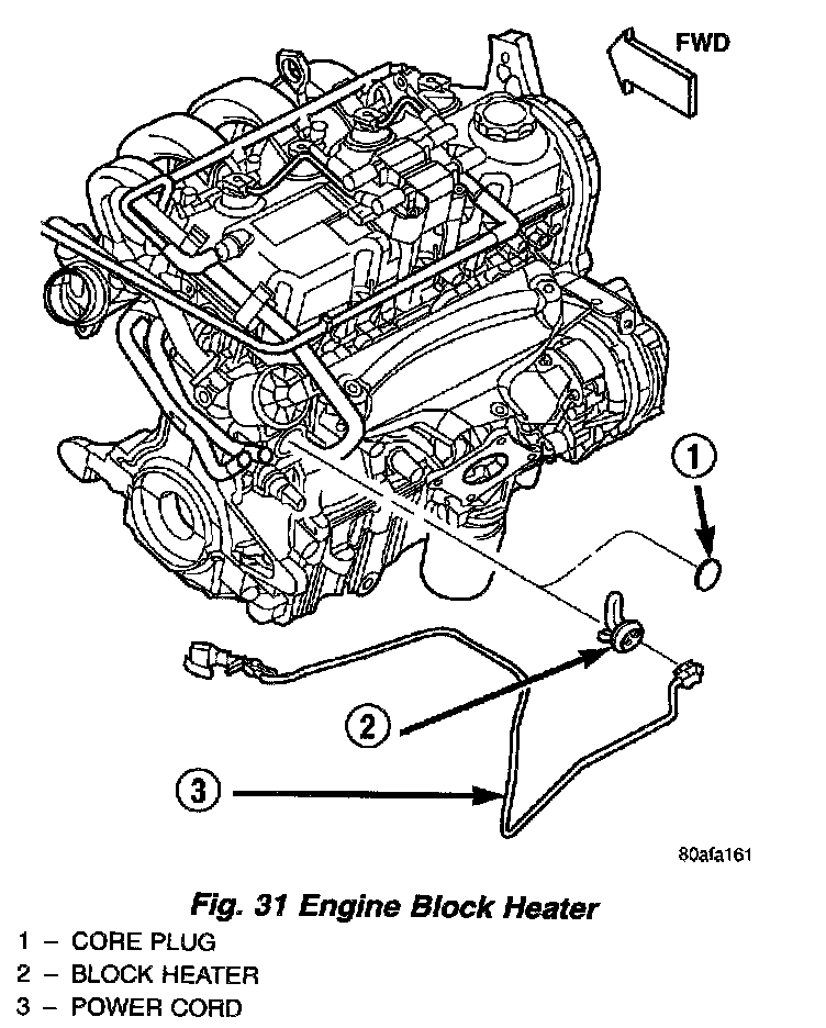 4. Connect power cord to block heater (Fig. 31).