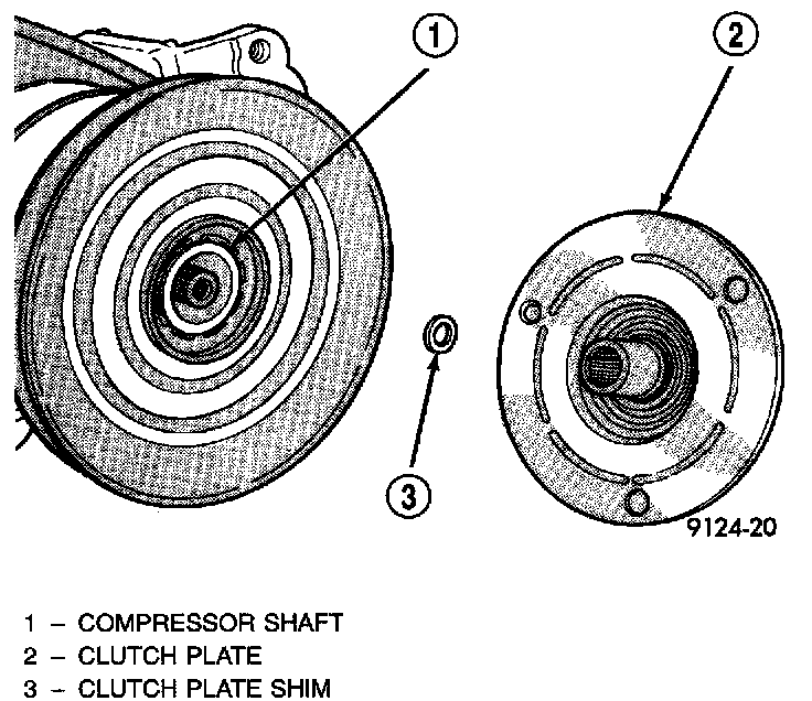 CAUTION: Do not use screwdrivers between the clutch plate assembly and pulley to remove front plate as this may damage the front plate assembly.