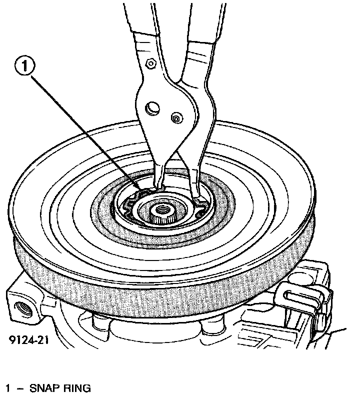 3. Remove pulley retaining snap ring with Snap Ring Pliers, and slide pulley assembly off of compressor.