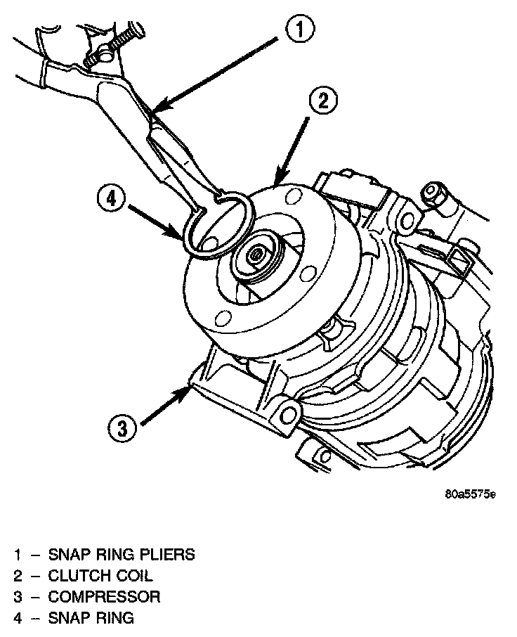 5. Remove snap ring retaining field coil onto compressor housing. Slide field coil off of compressor housing.