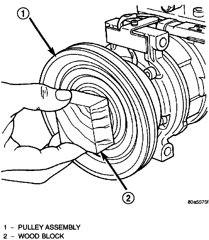 3. Install pulley assembly to compressor. If necessary, tap gently with a block of wood on the friction surface.
