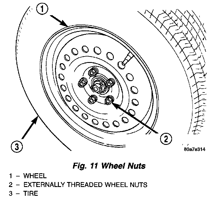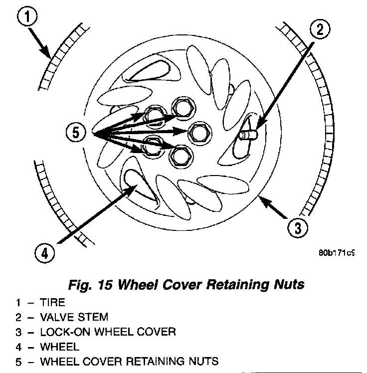 NOTE: When tightening the wheel cover retaining nuts it is recommended that a hand wrench be used and not an impact wrench. Use of an impact wrench could result in damage to the lock-on wheel cover retaining nuts.