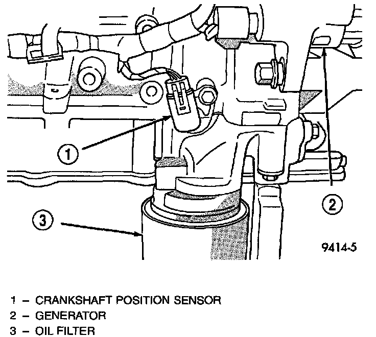 The Crankshaft Position Sensor mounts to the engine block behind the generator, just above the oil filter.