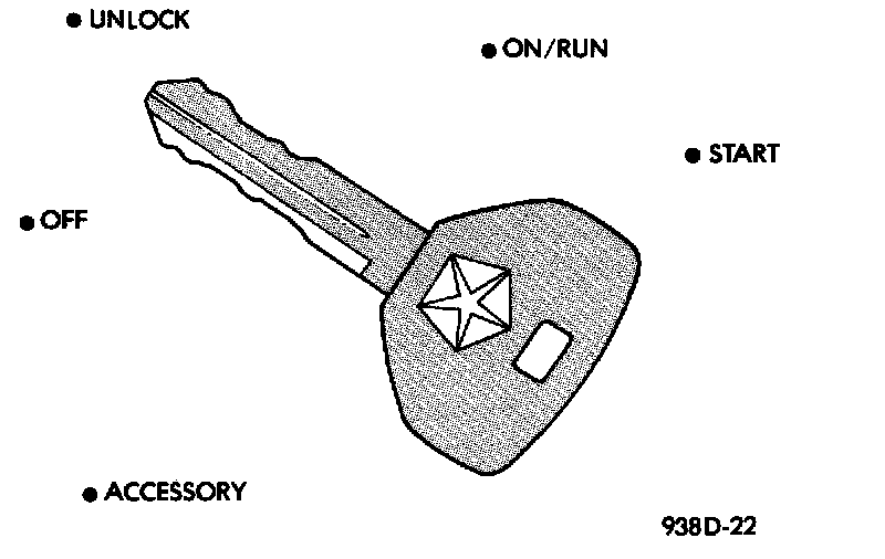 The ignition key rotates the cylinder to 5 different detents: