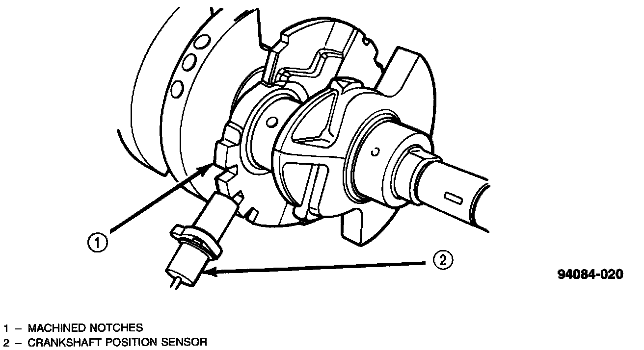 The Crankshaft Position (CKP) Sensor is a Hall-effect sensor. The second crankshaft counterweight has two sets of four timing reference notches including a 60 degree signature notch.