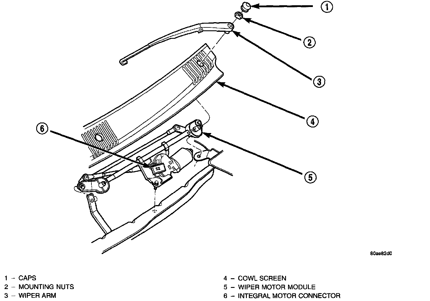 5. Remove windshield wiper module mounting screws and remove module from vehicle.