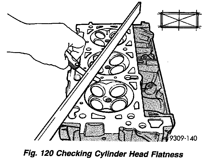 Check cylinder head for flatness (Fig. 120).