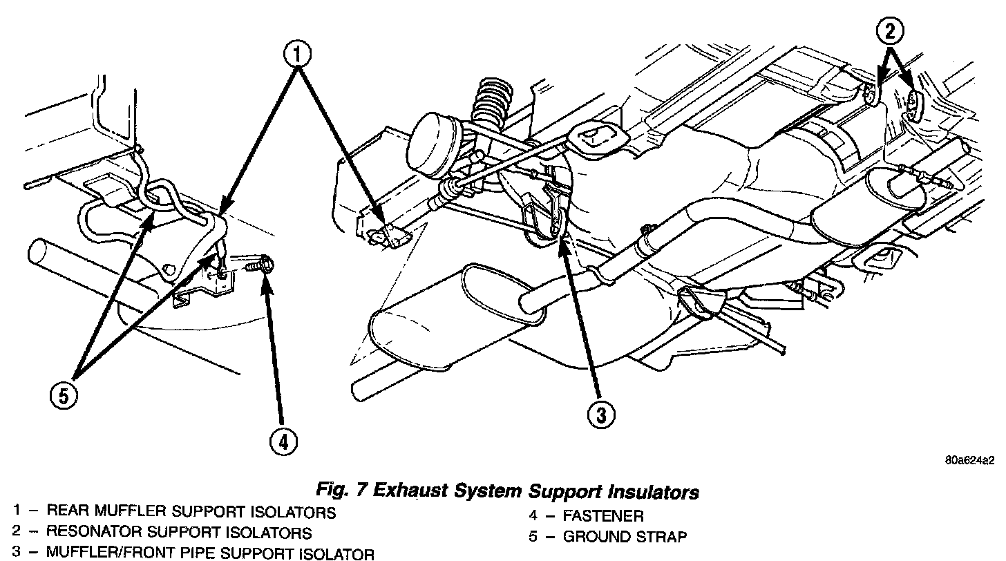 7. Clean ends of pipes and/or muffler to assure mating of all parts. Discard broken or worn insulators, rusted clamps, supports and attaching parts.