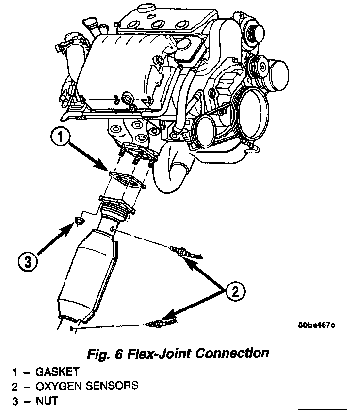 6. Remove catalytic converter to exhaust manifold attaching fasteners. Remove catalytic converter from vehicle.