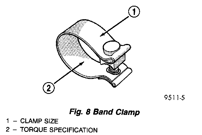 NOTE: Band clamps are spot welded to exhaust system. If a band clamp must be replaced, the spot weld must be ground off the exhaust pipe.