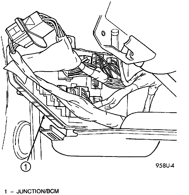 The Junction Block (JB) and Body Control Module (BCM) are attached to each other. After removal they can be separated. Junction Block and Body Control Module assemblies are located on the driver's side of the vehicle.