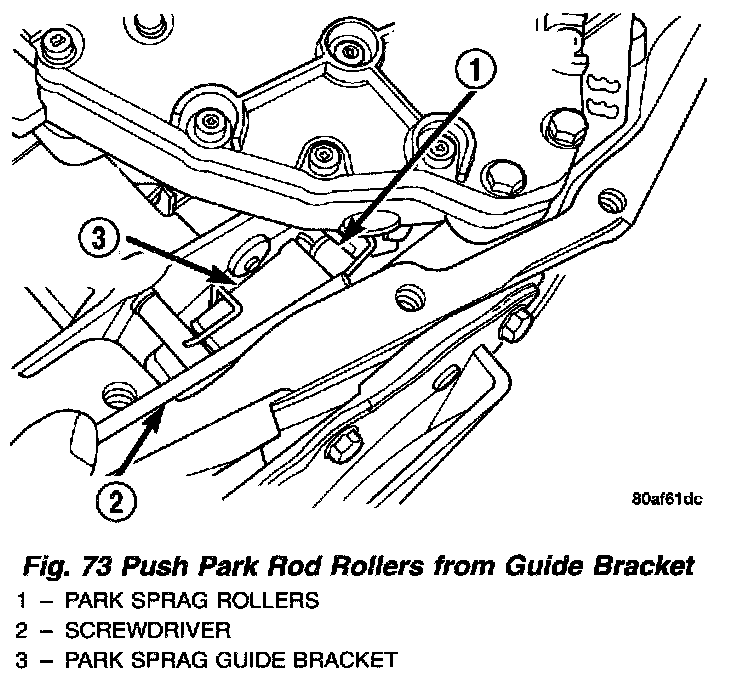 11. Remove park rod rollers from guide bracket and remove valve body from transaxle (Fig. 73) (Fig. 74).